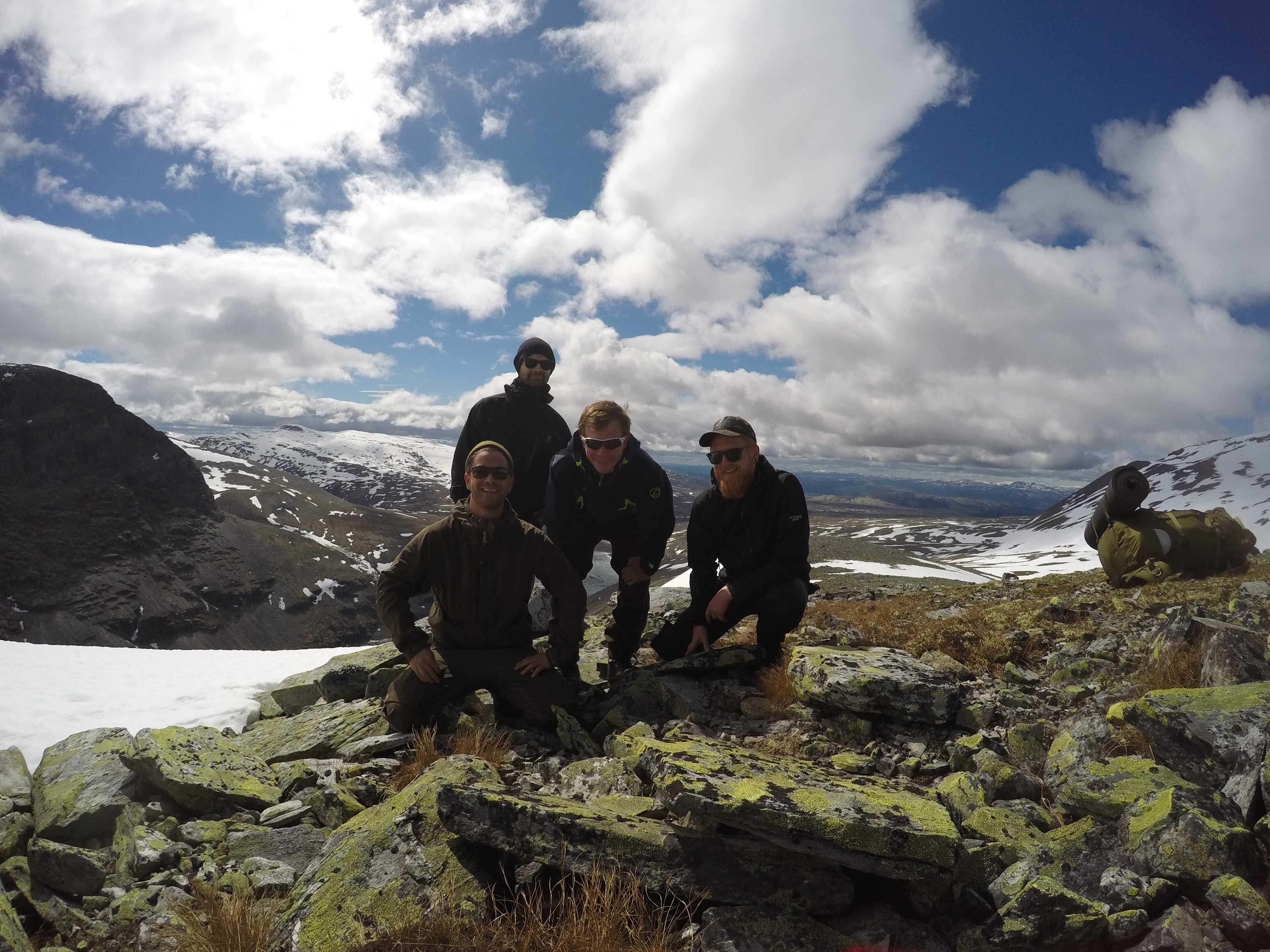 Over finner du bilde av den samme gjengen jeg har vært på tur med hver sommer nå i 7 år. Vi har hvert på turer i Femundmarka, Hardangervidda og Oslomarka, i år var planen Jotunheimen. Dessverre viste det seg å skulle bli vanskelig, det har ikke hvert så mye snø på fjellet på mange år. Vi la derfor om planene i siste sekund, og satte kursen for Rondane. Det skulle vise seg og være vel så bra, om ikke bedre.